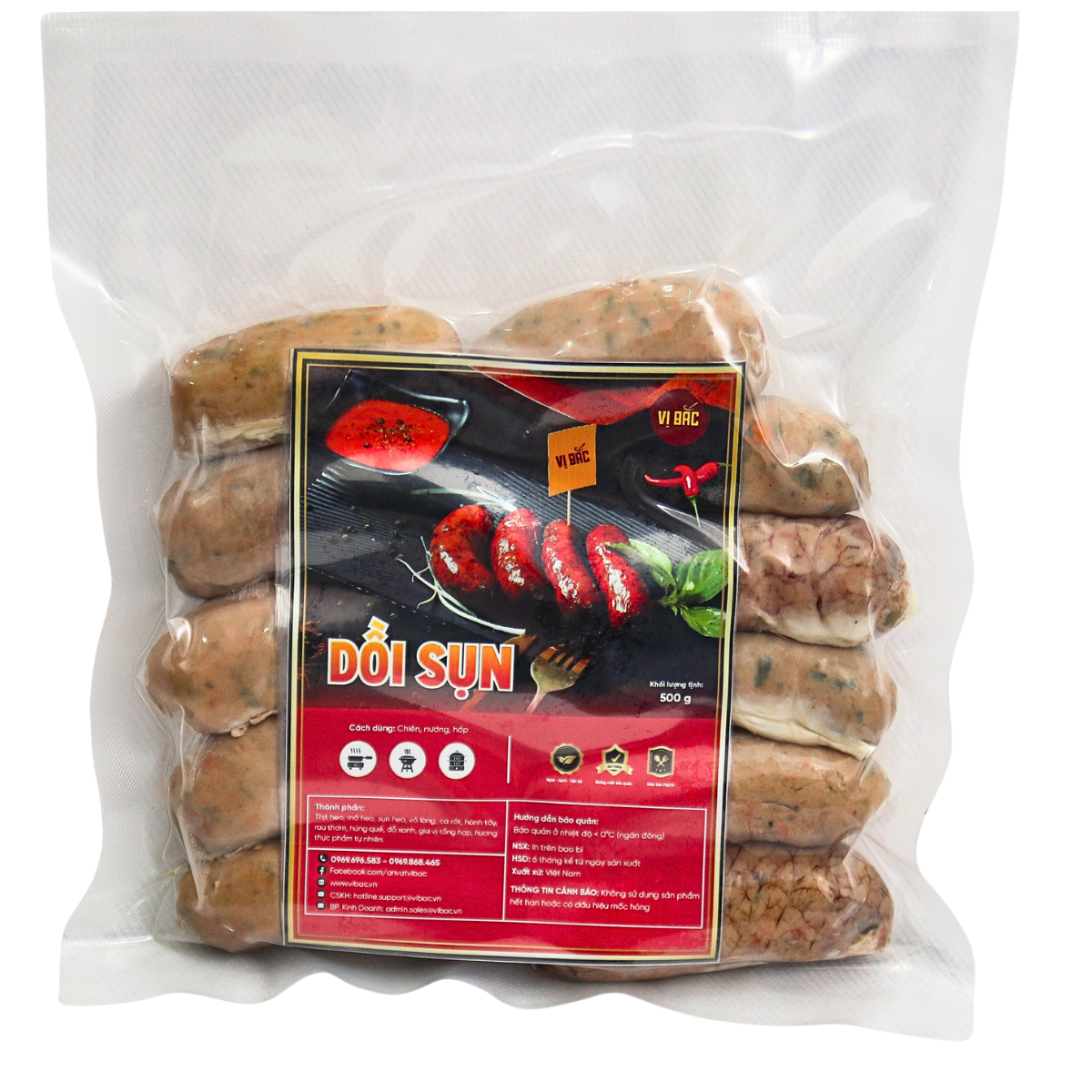 Dồi sụn Vị Phố được nhồi tỉ mỉ từ thịt heo sạch, sụn non giòn rụm, đỗ xanh bùi béo cùng rau củ tươi – tất cả được cuộn tròn trong lớp vỏ lòng heo sạch.