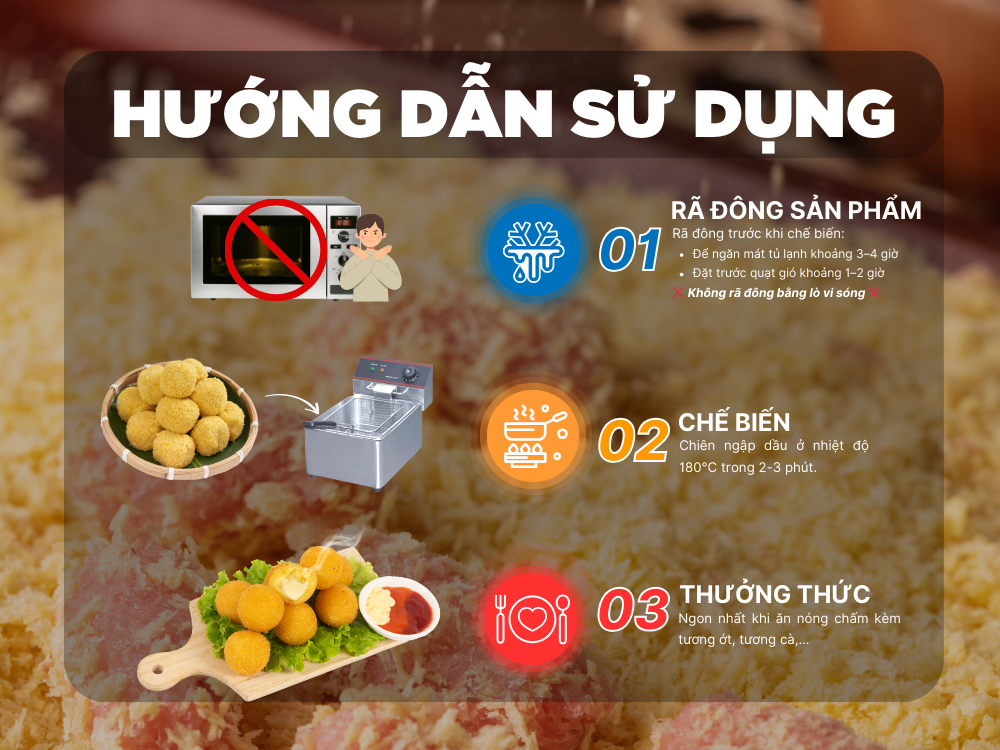 Nguyên liệu chính: Khoai lang Nhật, bột mì, bột nếp, đường, phô mai Mozzarella, bột chiên xù.