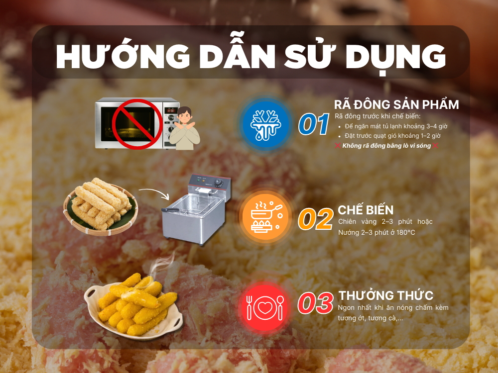 Nguyên liệu chính: Phô mai mozzarella, bột mì, bột xù, gia vị
