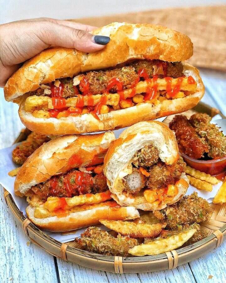 Sự kết hợp giữa nem chua rán giòn rụm, khoai tây chiên nóng hổi và sốt béo ngậy trong một ổ bánh mì đã tạo nên món ăn vặt gây sốt – bánh mì nem khoai. Món ăn này không chỉ ngon miệng mà còn tiện lợi, thích hợp cho những ai cần một bữa phụ nhanh gọn, đầy đủ năng lượng.
